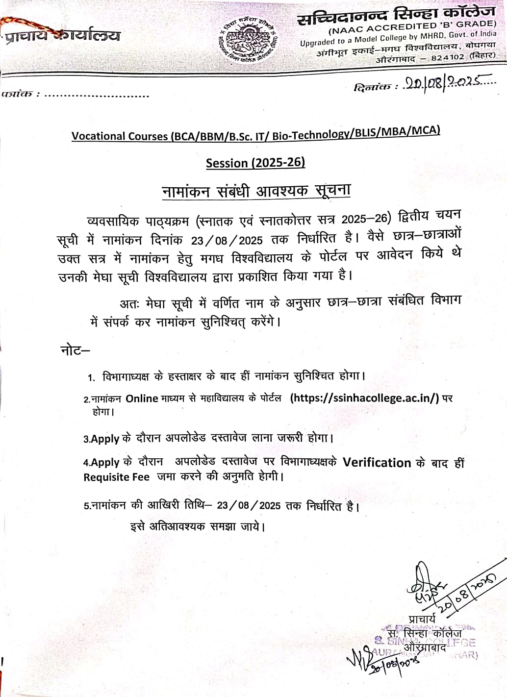 NOTICE REGARDING FOR VOCATIONAL ADMISSION (UG- 2025-28) & (PG- 2025-27) 2ND LIST